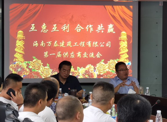 顏總表示:舉辦第一屆供應(yīng)商大會,目的就是傳遞我們的心聲,聽取你們的意見,爭取你們的支持,提出我們的要求,聯(lián)絡(luò)雙方的感情,達成共同的目標(biāo),把雙方利益放在同一高度來看,努力形成雙贏局面。顏總指出:海南萬泰公司成立9年來,與廣大合作伙伴風(fēng)雨同舟、攜手并進,結(jié)下了深厚的友誼,創(chuàng)造了不朽的佳績,在建筑領(lǐng)域形成了特色鮮明的品牌優(yōu)勢,在民營企業(yè)中居于行業(yè)前列。當(dāng)前,萬泰公司站在新的起點,開啟新的征程,為海南自貿(mào)港建設(shè)發(fā)展卯足了干勁,我們愿同各位合作伙伴繼續(xù)攜手共進,發(fā)揮各自優(yōu)勢,抱團取暖,適應(yīng)企業(yè)轉(zhuǎn)型升級發(fā)展需要,實現(xiàn)合作共贏1+1大于2的效果,共同鑄造事業(yè)品牌。