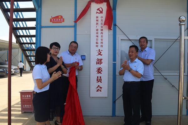 最后,傅愛萍副書記帶領(lǐng)大家共同為“長安制藥美安科技新城項目臨時黨支部”揭牌,開啟了項目支部建設(shè)的新征程,現(xiàn)場全體人員共同見證了這個難忘的時刻。